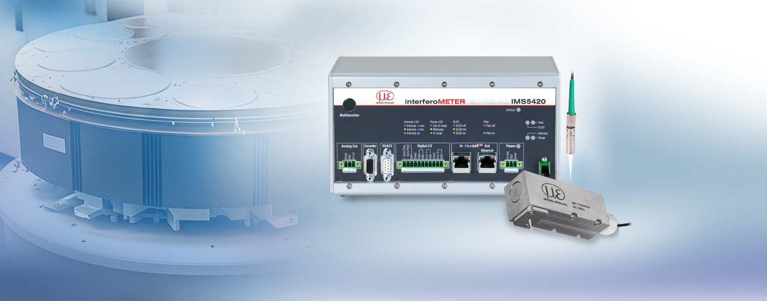 L’IMS5420 est un interféromètre à lumière blanche de haute performance pour la mesure de l’épaisseur sans contact de wafers de silicium monocristallin. Le contrôleur dispose d’une diode superluminescente (SLED) à large bande avec une plage de longueur d’onde de 1100 nm. Cette diode permet de mesurer l'épaisseur de wafers Si non dopées, dopées et fortement dopées à l'aide d'un seul système de mesure et avec une stabilité de signal inférieure à 1 nm. Selon le domaine d'application, des capteurs à grand écartement de base et des capteurs avec dispositif de soufflage libre sont disponibles.