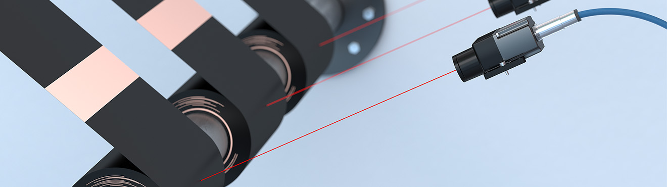 Les capteurs de distance laser de la série optoNCDT ILR3800 surveillent l’enroulement et le déroulement des bobines. Comme le diamètre augmente ou diminue continuellement, la distance entre la bobine et le capteur varie en conséquence.