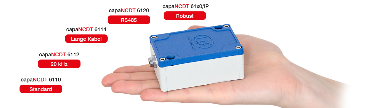 Grâce à son boîtier robuste en aluminium moulé sous pression, le capaNCDT 6100 convient également aux environnements industriels. Des versions spéciales offrent une flexibilité maximale pour de nombreuses applications : des indices de protection élevés jusqu’à IP68, de grandes longueurs de câble ainsi que l’utilisation dans des chaînes porte-câbles ou en automatisation robotique.