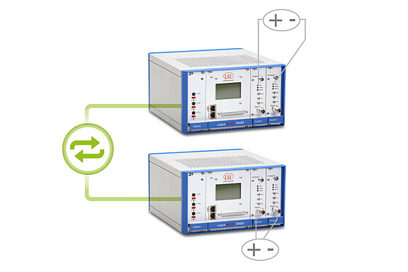 Pour des configurations plus étendues, plusieurs contrôleurs peuvent être synchronisés de manière externe. Ainsi, il est possible de faire fonctionner plus de 8 capteurs en parallèle, sans qu'ils ne s’influencent mutuellement. Cela assure des valeurs de mesure stables et d’une précision constante – même dans des applications multicanaux complexes.