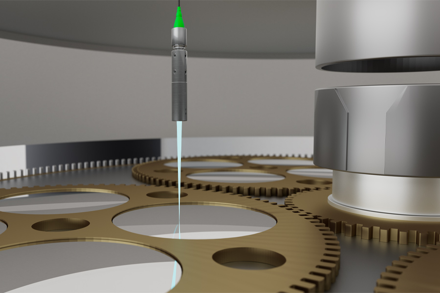 Dans la fabrication des plaquettes, un lingot de silicium cristallin est d'abord scié en tranches d'environ 1 mm d'épaisseur. Lors du processus de ponçage et de rodage qui suit, les wafers sont amenés à l'épaisseur finale requise, ce qui permet d'obtenir simultanément une qualité de surface élevée. Pour une gestion stable et reproductible des processus, les interferoMETER sont intégrés directement dans les machines de rodage et de rectification pour la mesure d'épaisseur en ligne. Les valeurs d'épaisseur saisies aident à la fois à la régulation de la machine et à l'assurance qualité de chaque wafer.