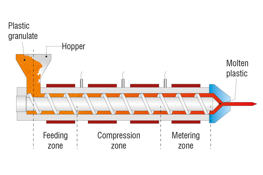Lors de la fabrication de masses solides à visqueuses comme la gélatine, le sirop et les matières plastiques, la masse est comprimée en continu sous pression dans des extrudeuses et pressée sous forme de boudin (extrudat).