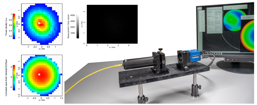 For laser beam characterisation, the conventional camera-based method described in ISO 11146 requires several measurements at different locations along the beam path. When using a wavefront sensor, a single measurement is sufficient to characterise a laser beam with moderate or good beam quality. The following application describes the characterisation of a diode laser using the Optocraft SHSLab wavefront sensor.