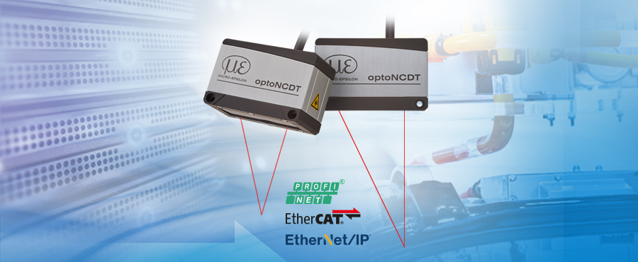 Pour une connexion flexible aux systèmes de commande, les capteurs optoNCDT 1900 disposent d’interfaces EtherCAT, EtherNet/IP et PROFINET intégrées. Grâce aux interfaces intégrées Industrial Ethernet, le capteur offre des avantages, notamment pour les processus rapides et la mise en réseau de plusieurs appareils et machines.